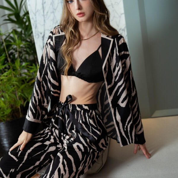 Trên những thước lụa tơ mang màu sắc nhã nhặn chuẩn style quý cô, BAMBI đã khéo léo pha trộn những sắc thái đậm nhạt bất đồng cùng họa tiết in chìm và những đường viền áo, ve cổ tinh tế, tạo nên một tổng thể hài hòa mang đậm dáng vẻ thanh lịch và quý phái. BST Fendi Night không để lại cho nàng ấn tượng quá mức mạnh mẽ, vương giả nhưng vẫn toát lên sự kiêu sa, duyên dáng, biến các quý cô thành một nàng thơ yêu kiều ngay cả khi ở nhà.
