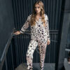 Họa tiết hồng lựu xinh xắn điểm xuyết trên chất liệu lụa tơ cao cấp màu sắc trang nhã cùng kiểu dáng áo dài-quần dài kinh điển khiến nàng trông vừa tươi trẻ, tinh nghịch vừa duyên dáng, lịch thiệp.