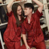 Cùng chàng tận hưởng bữa tối dưới ánh nến lãng mạn trong sắc đỏ nồng nàn của bộ pijamas lụa cao cấp nhà BAMBI.