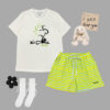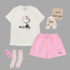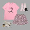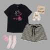 Sử dụng chất liệu cotton siêu thấm hút, loạt thiết kế LOVELY BAMBI mang phong cách năng động, cá tính với áo phông họa tiết ngộ nghĩnh cùng quần cộc tone sur tone sọc ngang đem đến cho nàng vẻ ngoài không chỉ hiện đại, phá cách mà còn cực ngọt ngào, đáng yêu.
